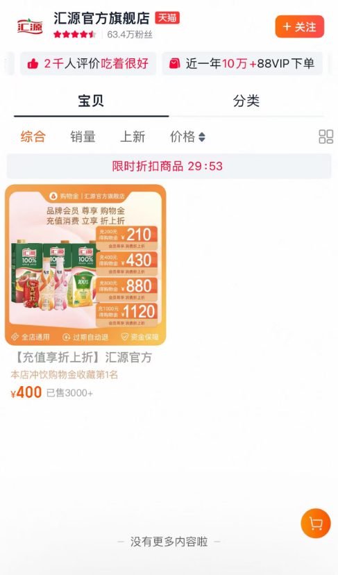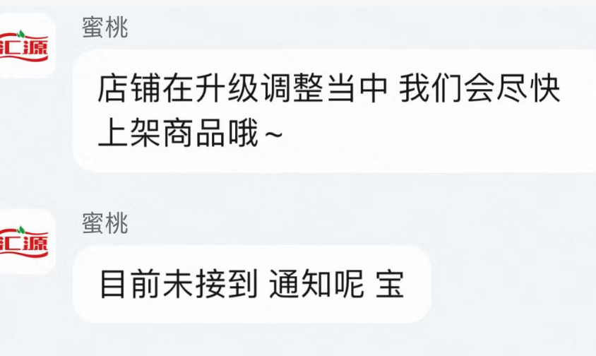 天猫汇源店铺客服回复记者称,“店铺在升级调整中,会尽快上架商品。”